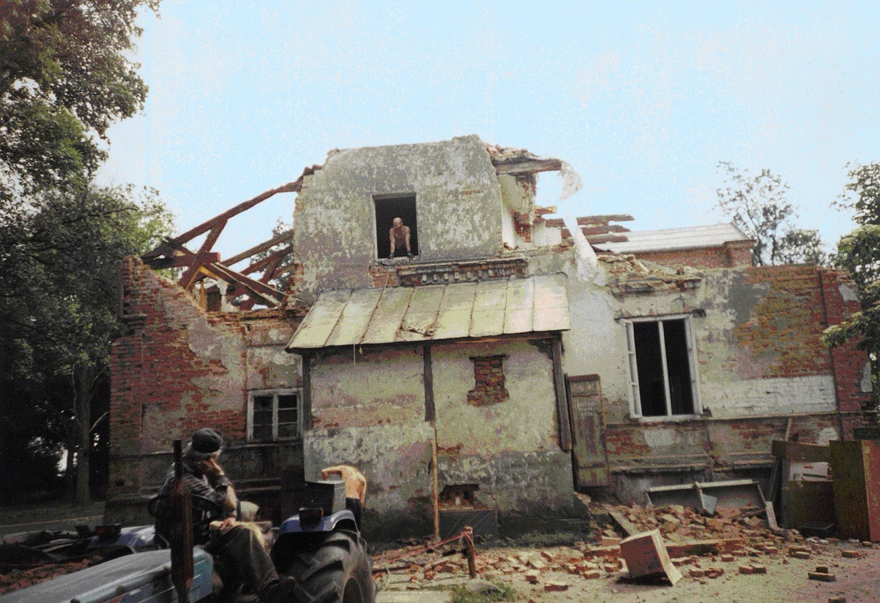 W pamięć zapadła scena, gdy ganek został wyrwany z budynku za pomocą traktora. Wkrótce potem na miejscu pojawiła się koparka „Białoruś” – prezent od przyjaciół z dawnego NRD.