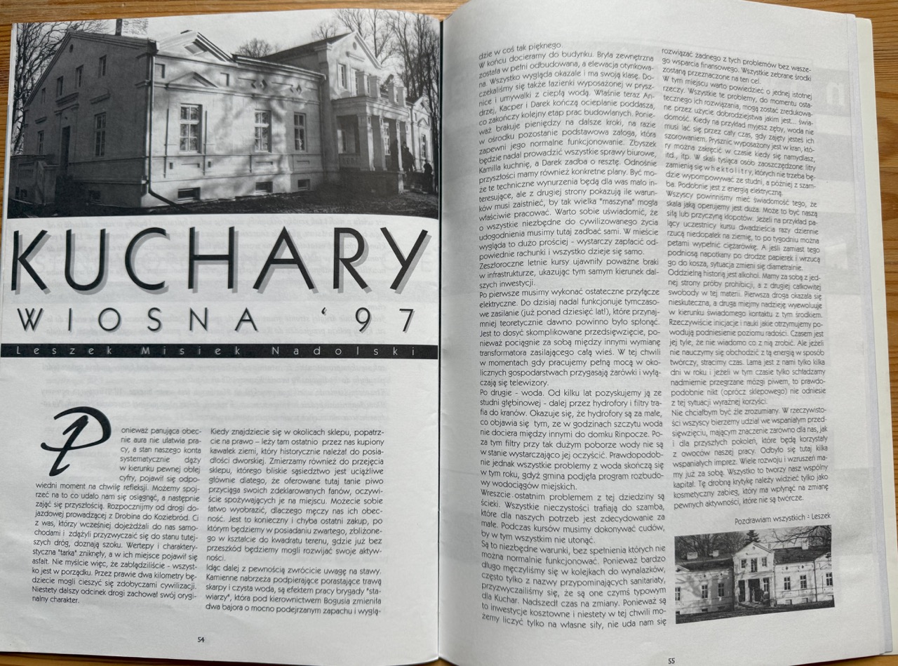 (…) Tymczasem w Kucharach tempo prac budowlano – wykończeniowych nabrało prawdziwego rozmachu. Pokój Karmapy, pokój Lamy Ole, pokoje gościnne, łazienki, jadalnia – właściwie całe piętro w dworku, osiągnęło standard, jak się wyraziła Caty, „całkowicie europejski”.