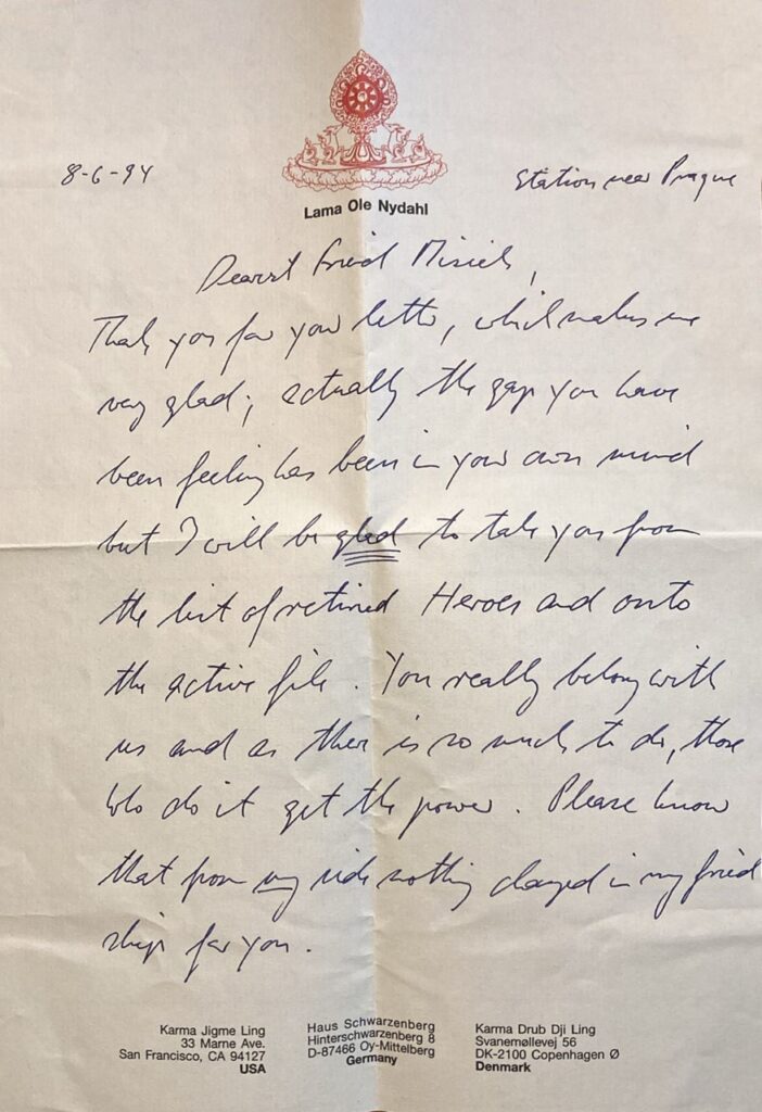 W końcu uległem i oddałem się całkowicie do dyspozycji Lamie Ole; wyraziłem to w liście jaki wysłałem do niego w pierwszej części 1994 roku.”