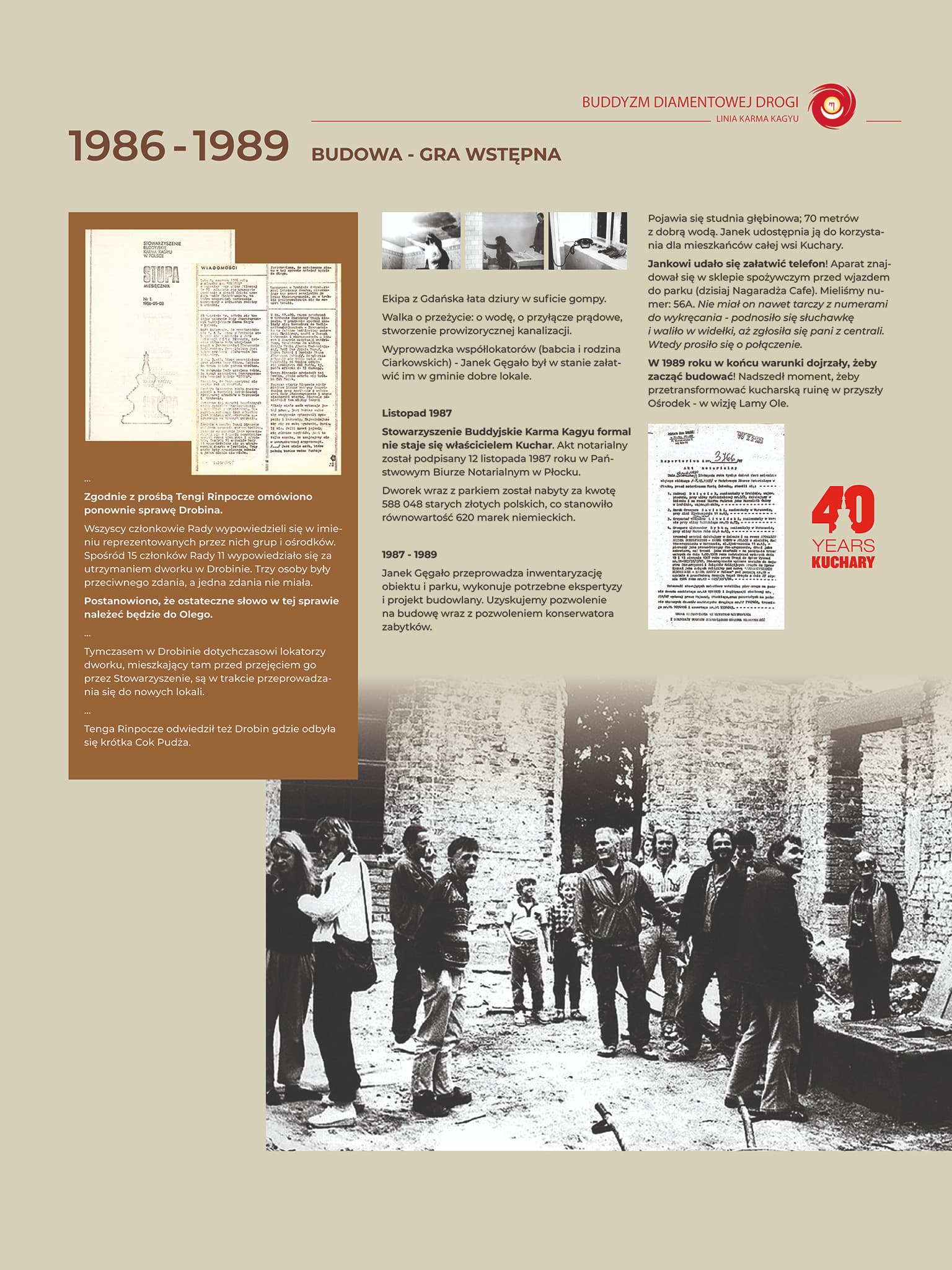 I tak rozpoczęła się fantastyczna podróż, która trwa do dziś. Przez ostatnie kilkadziesiąt lat ośrodek w Kucharach zorganizował dziesiątki kursów medytacyjnych, gościł najważniejszych nauczycieli linii Karma Kagyu i tysiące praktykujących z całego świata.