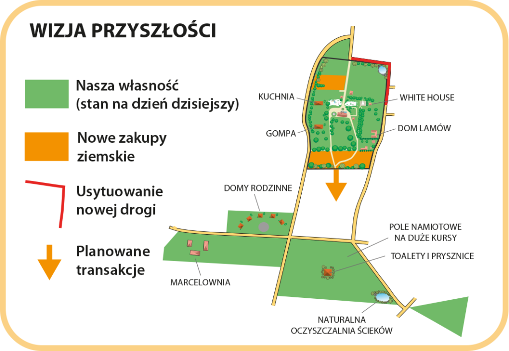 Na trzeciej planszy uwidocznione są ostateczne kroki związane z ustaleniem granic ośrodka. Pokazany tutaj podział na funkcje ma charakter wstępny (osoby, które martwią się o nową lokalizację pola namiotowego mogą się rozluźnić) i mówiąc ogólnie dążymy do aktywnego wykorzystanie całego naszego terenu.